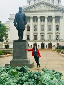 It was a beautiful sleep. The next day I woke up and drove to Madison where I met a friend for coffee and a photo of me beside the iron statue of Hans somebody, a well sculpted specimen of man. His beard was well shaped.